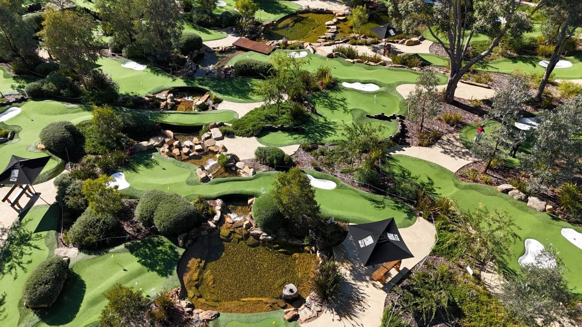 Yallingup Maze and Mini Golf is a great place to spend a few hours in Western Australia’s magnificent southwest. It’s a place where all ages can be entertained, making it the perfect destination for any generation to have fun. Challenge yourself, your family, your friends! There is a timber maze with towers and bridges and an 18-hole award-winning mini golf course. There is a spacious air-conditioned cafe, comfortable all year round with plenty of seating and free-to-play puzzle games on the cafe tables. The cafe menu includes light lunches local craft beer and Margaret River wine. There is alfresco seating with views of the nature playground and the dam beyond. Relax on the deck enjoying freshly ground coffee, smoothies, milkshakes and treats. There is also an amazing puzzle shop with an extensive range of puzzles, brain teasers, board games and educational games for sale and make great gifts. Be enchanted in the nature playground and log maze. There is plenty of space to run, kick a ball and enjoy the natural surroundings.